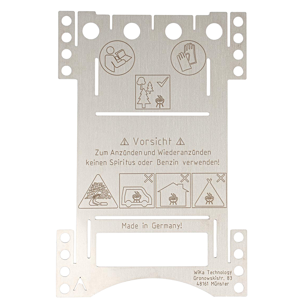Des Weiteren ist das Rückteil mit Warnhinweis und Herstellerinformation beschriftet.